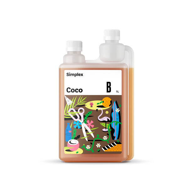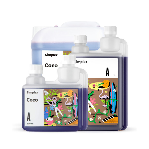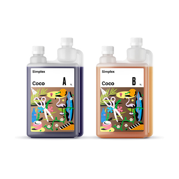 Simplex Coco A+B объемом 1 литр — базовые органоминеральные удобрения, специально разработанные для выращивания растений на кокосовом субстрате. Состав полноценно обеспечивает все потребности растения, учитывая особенности кокосового волокна. Может применяться в гидропонных системах любого типа, кроме реверсивных.